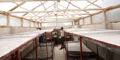 Cassava flour, produced in Aspuna Tanzania’s plant, awaiting quality control inspection